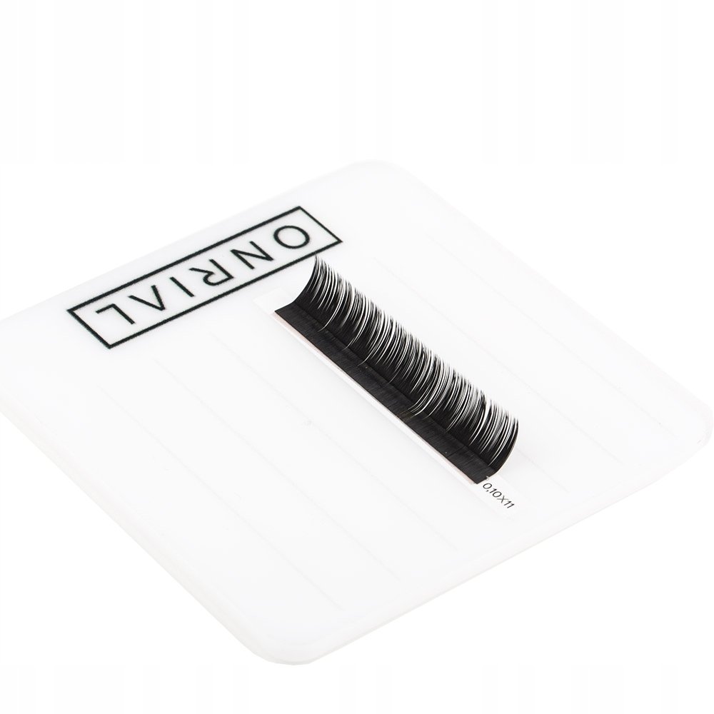 Czarne rzęsy ONRIAL dostępne są w dużych paletkach – każda zawiera 21 rzędów rzęs przy szerokości taśmy 42 mm. Ich długość, grubość oraz skręt możesz dopasować do swoich potrzeb. Szeroki wybór modeli sprawia, że z łatwością znajdziesz wariant, którego szukasz. A tym samym – uzupełnisz salonowe regały w wysokiej klasy rzęsy, które zadowolą nawet najbardziej wymagające klientki.