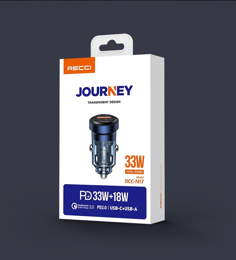 SZYBKA ŁADOWARKA SAMOCHODOWA USB-C TYP C i USB QC PD 3A 33W RECCI⚡ Funkcja szybkiego ładowania QUCIK CHARGE 3A QC PD 33W ⚡USB-C PD 33W i USB QC 18W✅ jest szybką ładowarką samochodową wspierającą ...