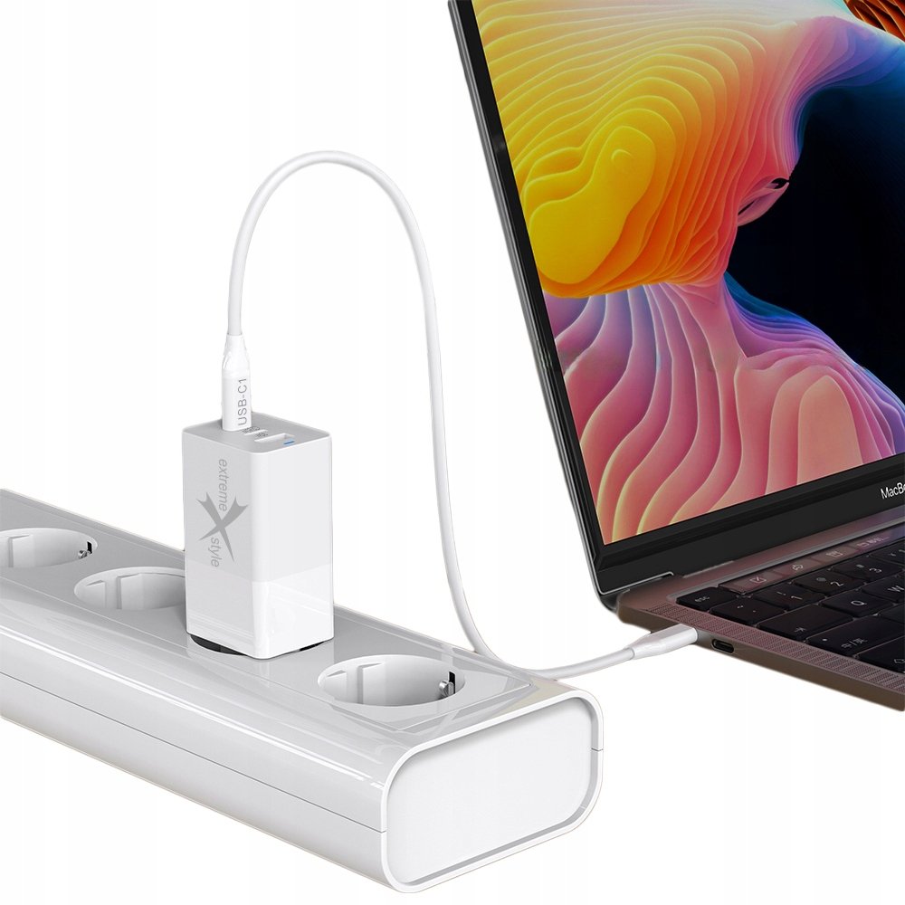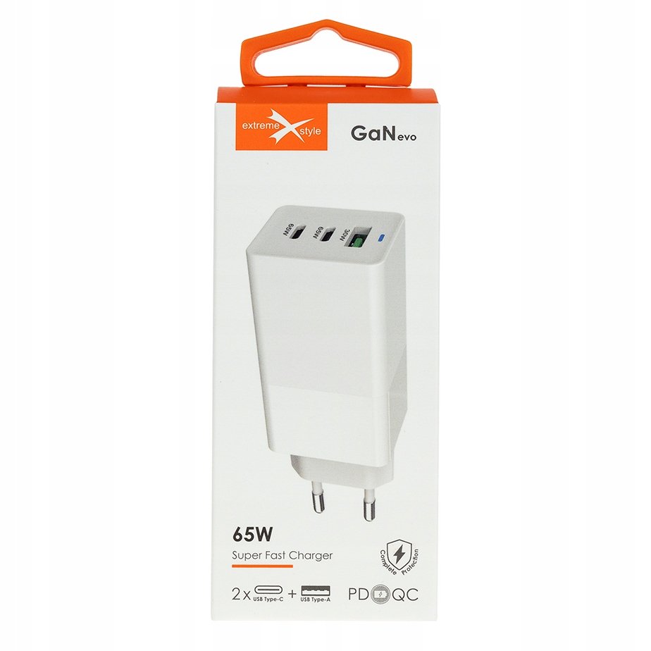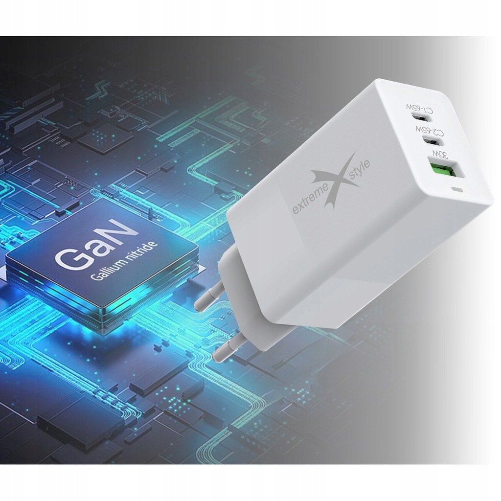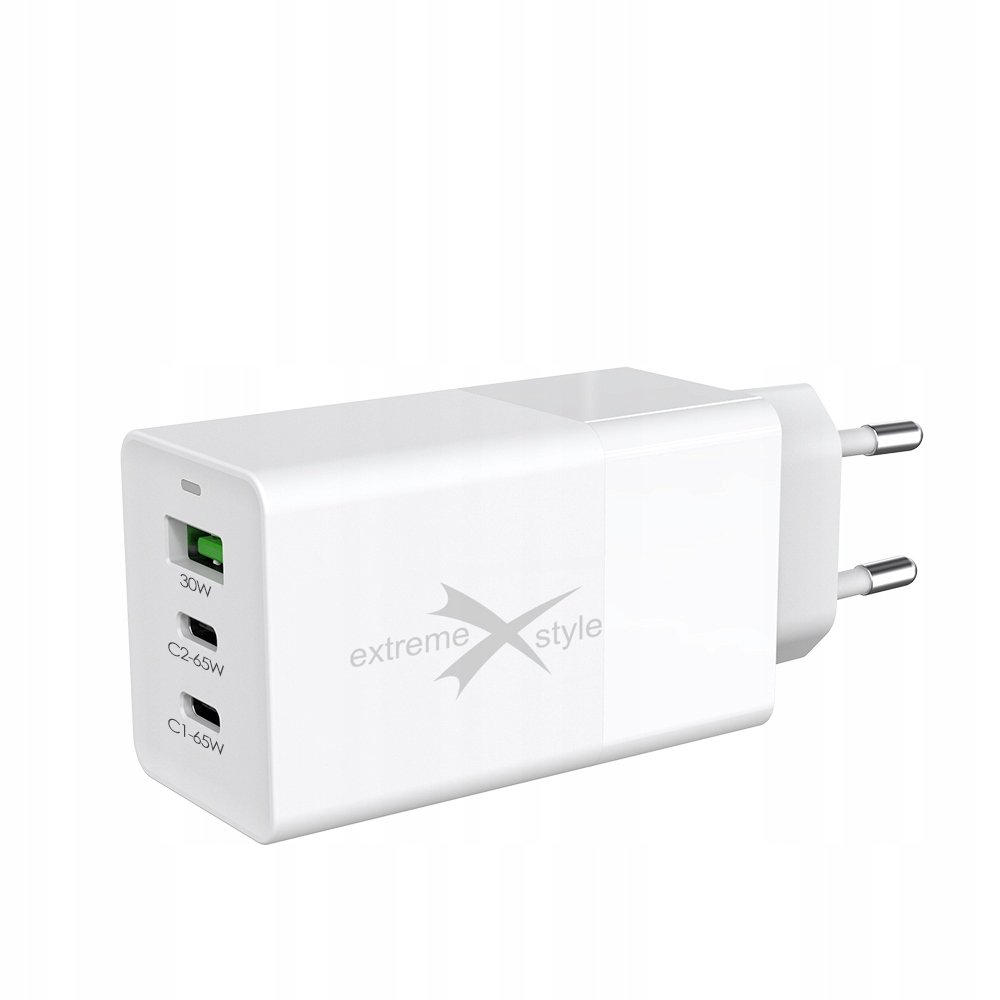SZYBKA ŁADOWARKA SIECIOWA – 2 X USB C + USB – PD + QC – GAN – 65W eXtremestyle® TC65CCUGAN Szybkie ładowanie Ładowarka posiada trzy porty: USB-A i 2 x USB-C. Jej całkowita moc wyjściowa wynosi 65 ...