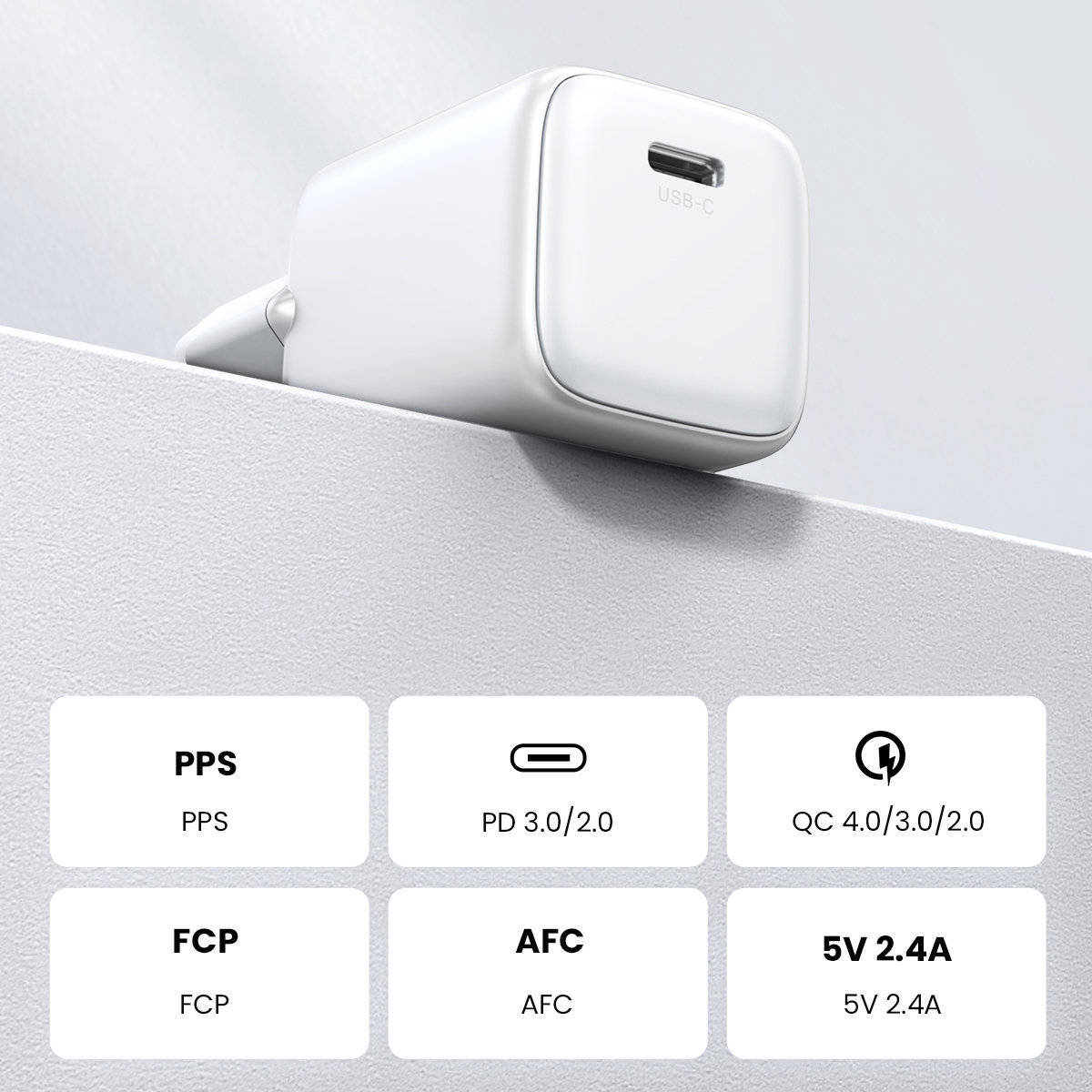 Szybka ładowarka sieciowa GaN USB C 30W PD Ugreen Nexode Mini - biała