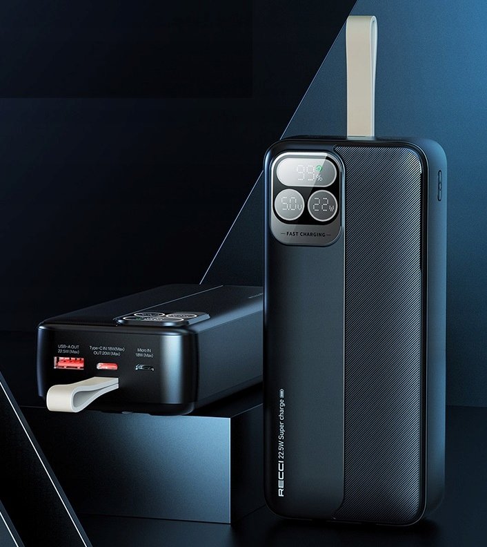 Właśnie zrecenzowałem SZYBKI POWERBANK 30000MAH 22,5W 3A PD Z WBUDOWANYMI KABLAMI Z EKRANEM RECCI