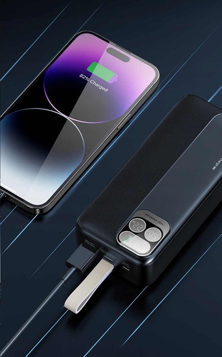 SZYBKI POWERBANK 30000MAH 22,5W 3A PD Z WBUDOWANYMI KABLAMI Z EKRANEM RECCI⚡ Funkcja szybkiego ładowania PD 20W I 22,5WKoniec kabli przejdź na POWERBANKA Z WBUDOWANYMI KABLAMI✅ + DODATKOWO MASZ 2 ...
