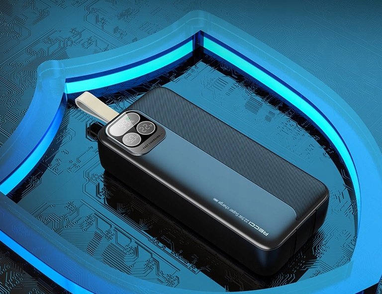 | Nazwa: | SZYBKI POWERBANK 30000MAH 22,5W 3A PD Z WBUDOWANYMI KABLAMI Z EKRANEM RECCI |