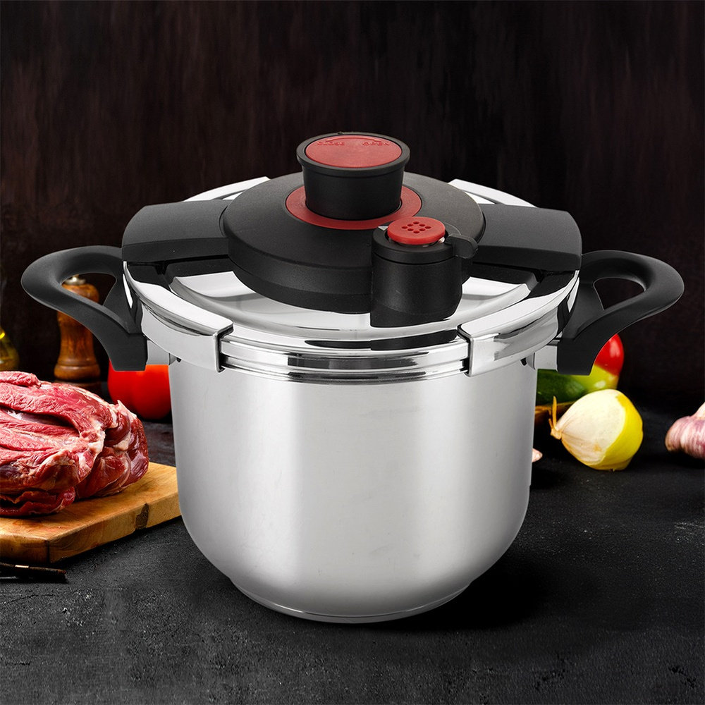 ✅ Zawór bezpieczeństwa i możliwość regulacji ciśnienia - Szybkowar posiada zawór bezpieczeństwa oraz 2 programy gotowania, a także program uwalniania pary.