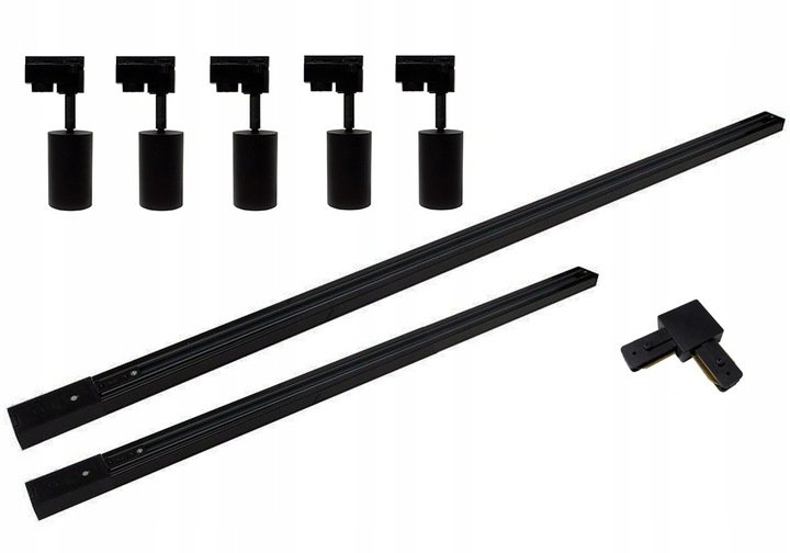 Zestaw składa się z szynoprzewodu 1- fazowego o długości 2 metra i 1 metra, łącznika narożnego oraz 5 sztuk wymiennych opraw szynowych GU10.