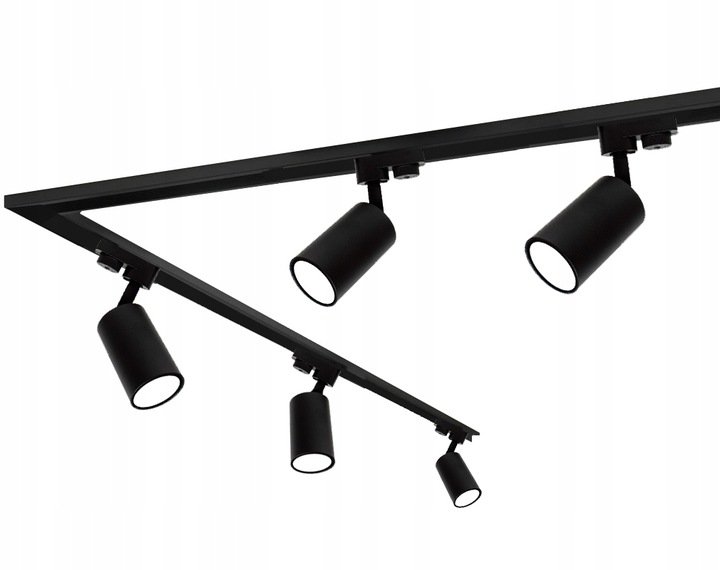 Zestaw Szynoprzewód 2m + 1m 1-fazowy + 5x Oprawa na żarówkę GU10 + łącznik szyn narożny producent: SuperLED kolor: czarny mat montaż: natynkowy materiał: aluminium kształt ...