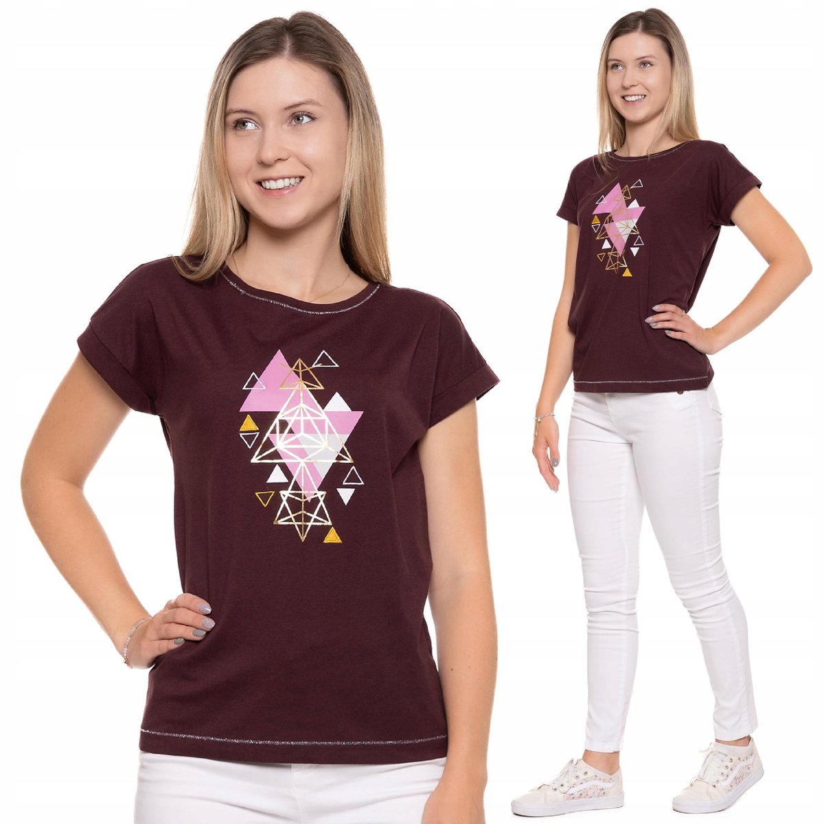 Koszulka Damska z krótkim rękawem i stylowym nadrukiem z przodu w kolorze bordowym sprawia, że idealnie pasuje do różnych stylizacji.