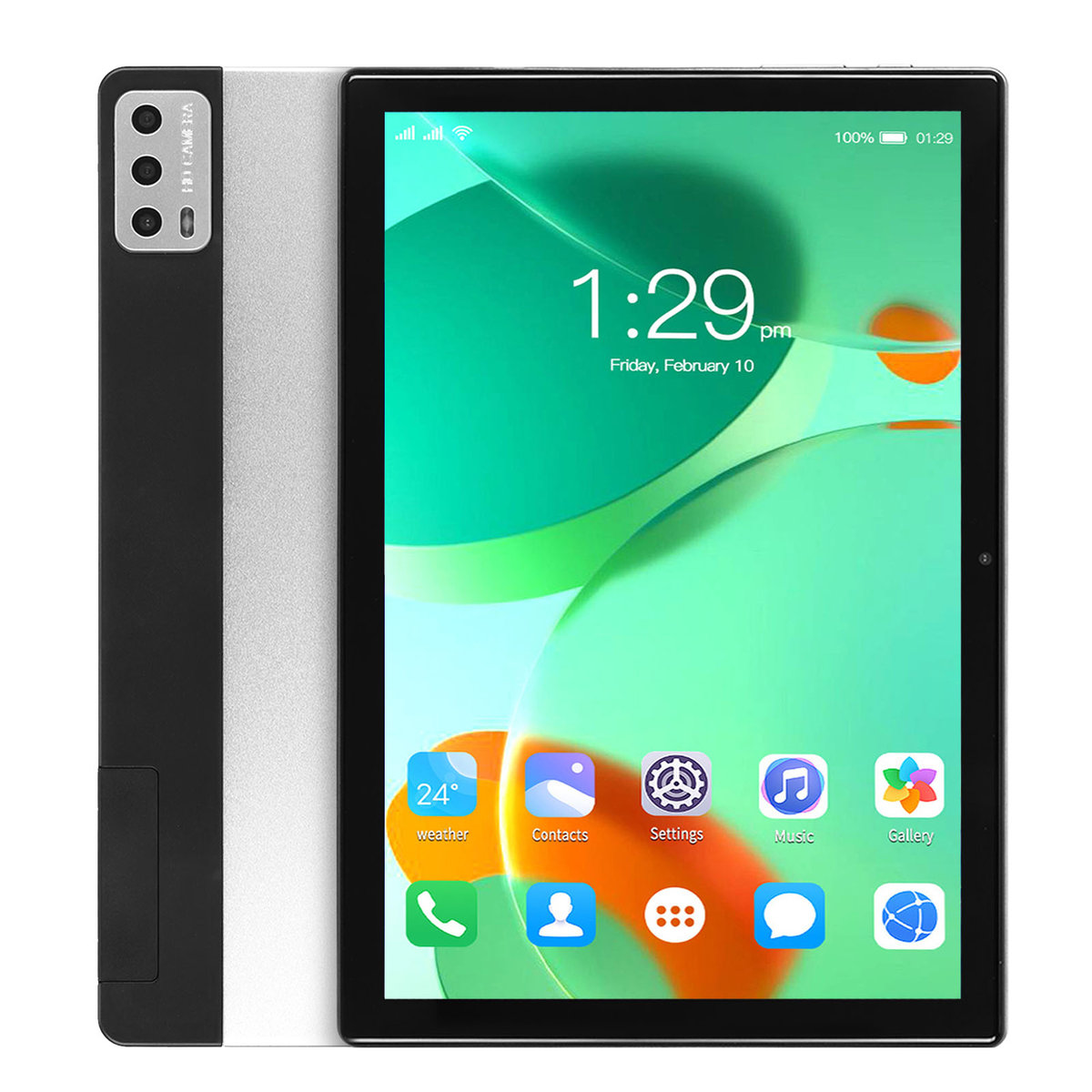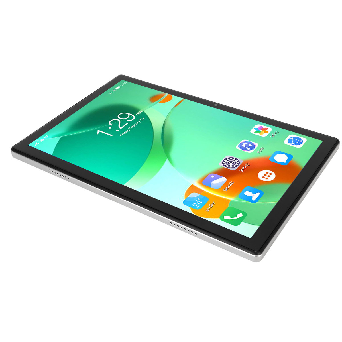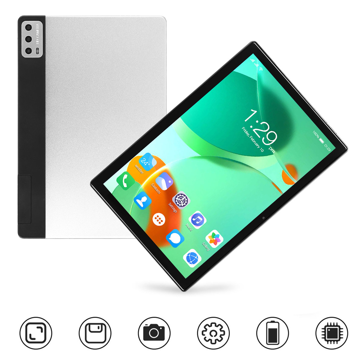 2. 5G WiFi: Tablet obsługuje funkcję rozmów w paśmie 4G, połączenie WiFi 2,4G i 5G, ma system Android 12.0 i srebrny wygląd.