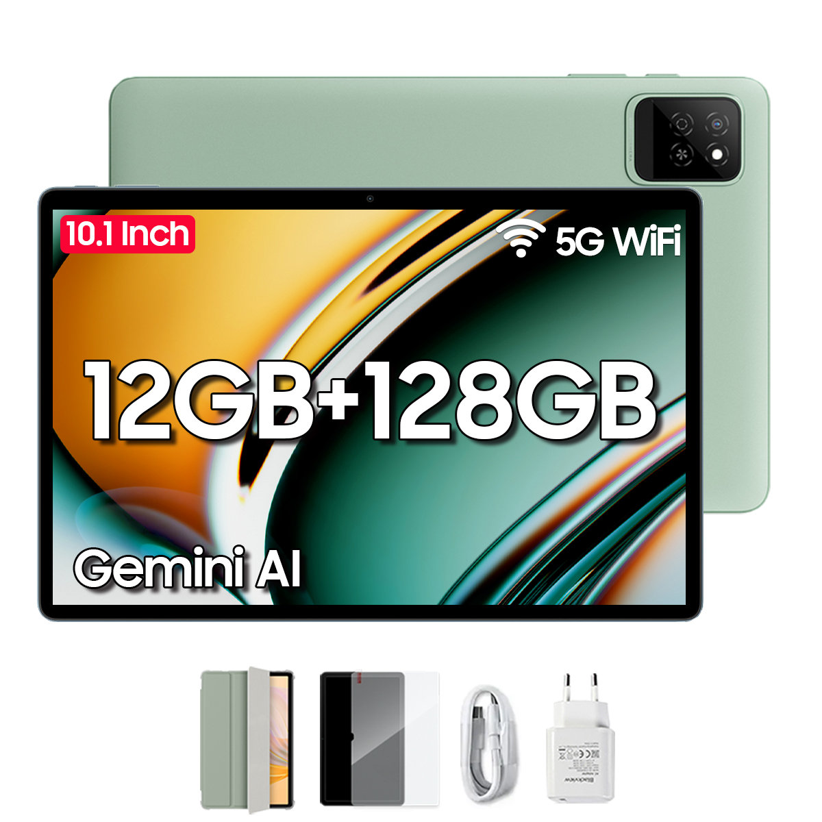 OSCAL Tablet Pad 30 WiFi z systemem Android 15, 12 GB + 128 GB (z możliwością rozszerzenia do 2 TB), 10,1-calowy ekran HD+, bateria 6600 mAh, aparat 5 MP + 8 MP, Bluetooth 5G WiFi, dwa głośniki, odblokowywanie twarzą; certyfikat TÜV Rheinland Low Blue Light