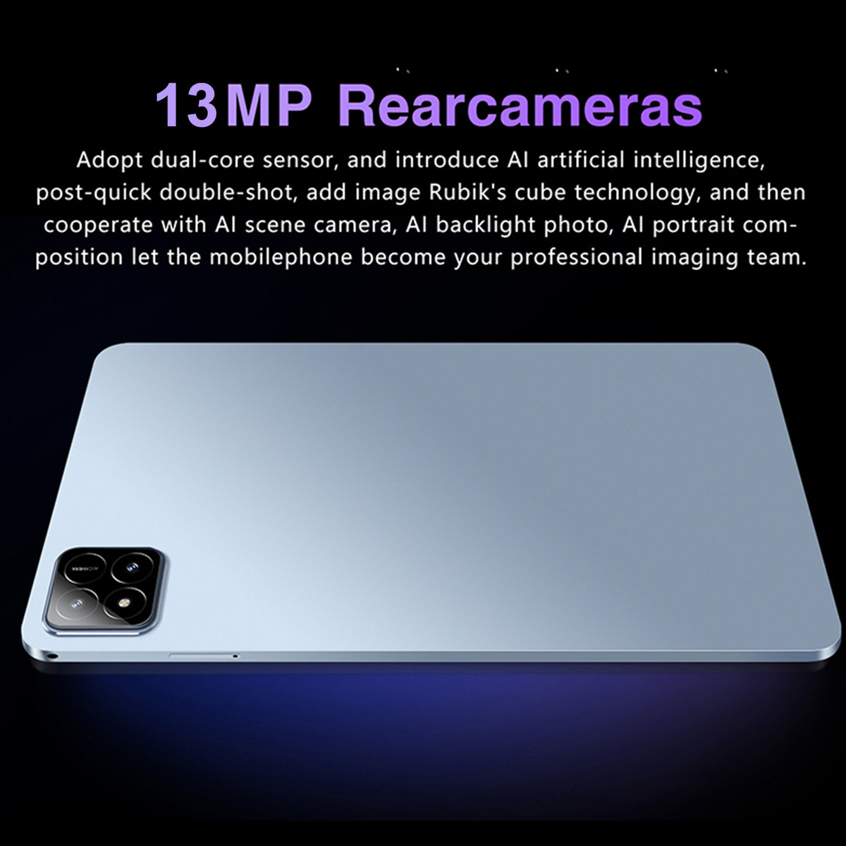 5. Więcej funkcji: Wbudowana trwała bateria 6800 mAh pozwala Ci swobodnie cieszyć się 8 - 10 godzinami czytania lub oglądania filmów po pełnym naładowaniu. Podwójne kamery przednie i tylne 5MP + 13MP doskonale zapisują wszystkie Twoje piękne chwile.