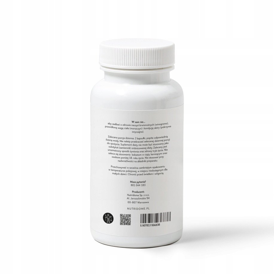 żelatyna wołowa, substancja wypełniająca: celuloza mikrokrystaliczna; ekstrakt z pestek winogron, ekstrakt z ziela skrzypu polnego, ekstrakt z liści pokrzywy zwyczajnej, ekstrakt z liści zielonej herbaty, ekstrakt z morszczynu pęcherzykowatego, substancje przeciwzbrylające: sole magnezowe kwasów tłuszczowych, dwutlenek krzemu; barwnik: dwutlenek tytanu.