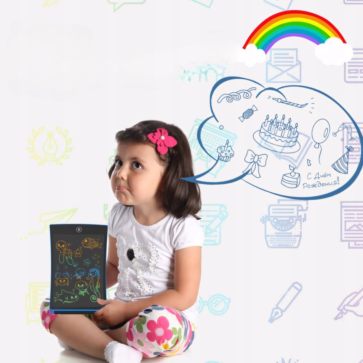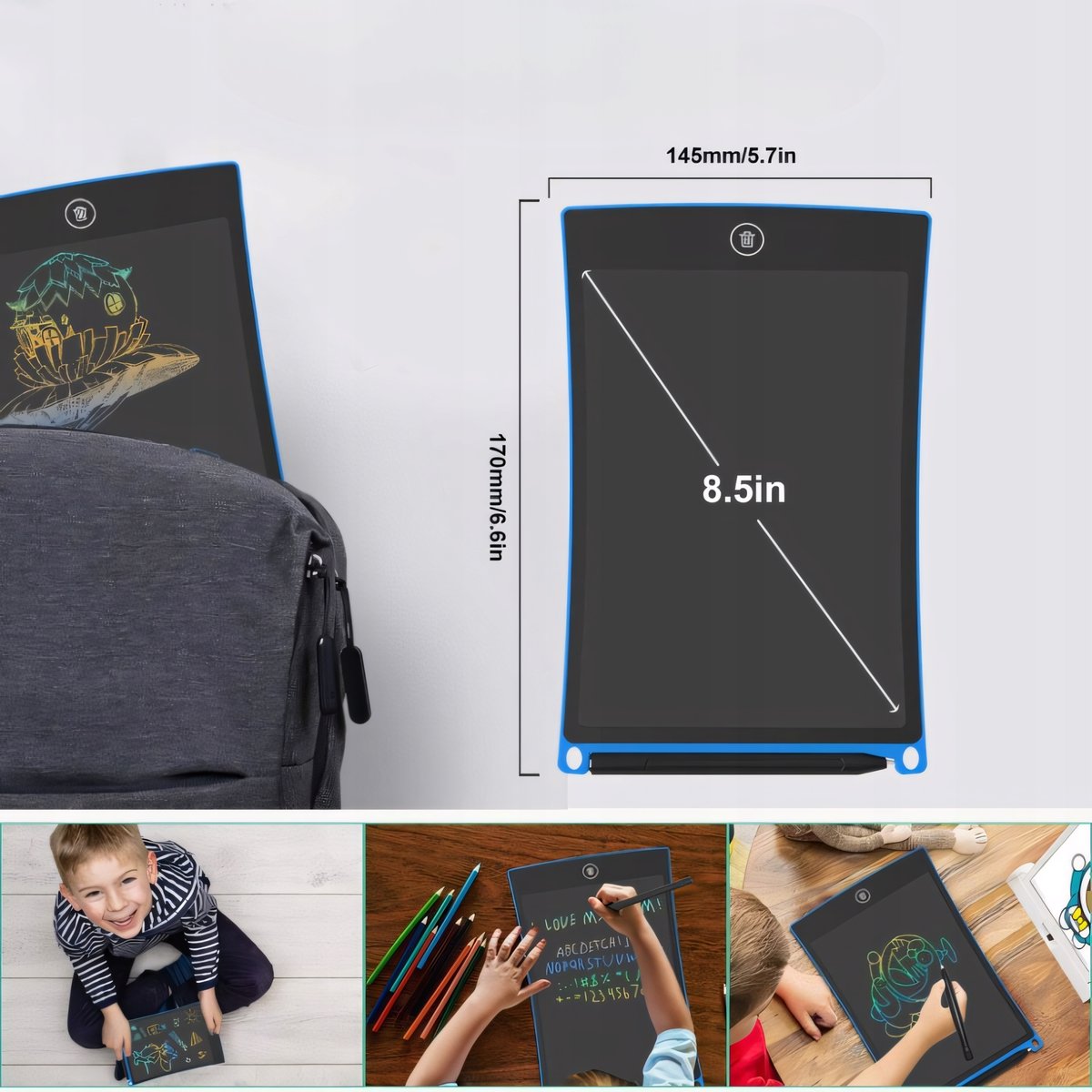 - Tablica LCD 8,5" z kolorowym ekranem zachęca dzieci do rysowania, malowania i nauki pisania liter czy cyfr. Lekka konstrukcja sprawia, że mieści się w kieszeni czy torbie, idealna na długie jazdy samochodem czy podróże.