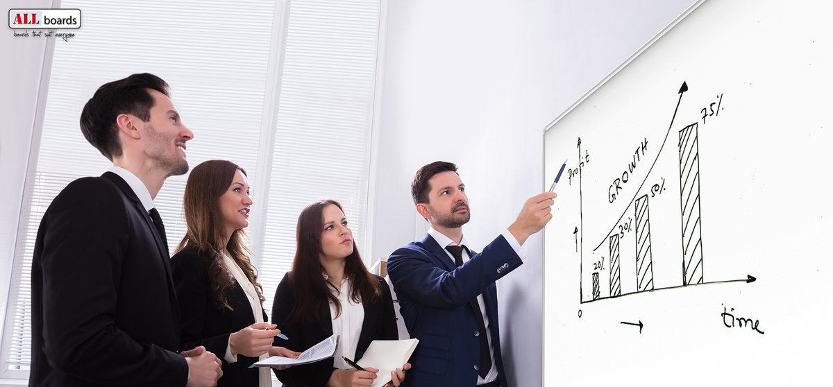 Tablica suchościeralna magnetyczna biała w ramie aluminiowej anodowanej EXPO, wykonana z wysokiej jakości blachy.