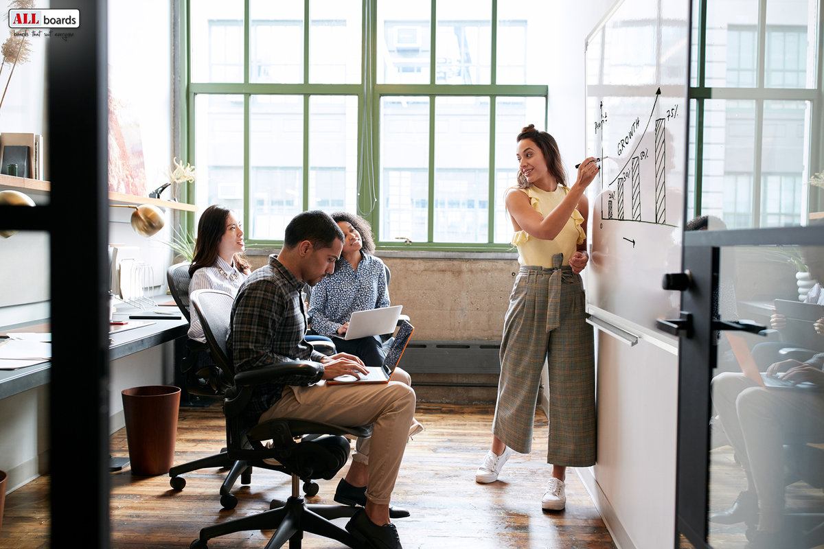 Biała magnetyczna tablica ALLboards wykonana jest ze sztywnej i wytrzymałej blachy, dzięki której tablica zyskuje właściwości magnetyczne. Blacha pokryta jest warstwą lakieru, który nadaje tablicy biały kolor oraz gładką i lśniącą powierzchnię. Dzięki zastosowaniu odpowiedniego lakieru, tablice można ścierać na sucho za pomocą dołączonej do zestawu gąbki lub papierowego ręcznika. Do tablicy możemy przypinać każdego rodzaju magnesy: neodymowe, turystyczne, klasyczne, ozdobne. Znakomicie nadaje się również do wykorzystania z ramkami magnetycznymi oraz innymi magnetycznymi akcesoriami.