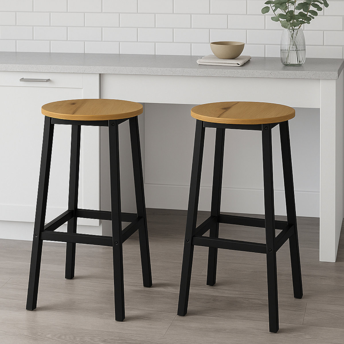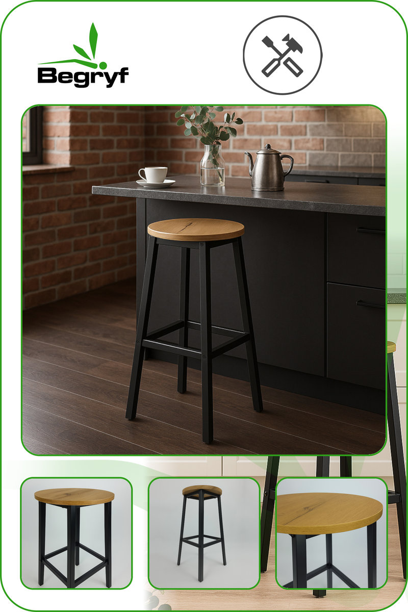 Stołki idealnie nadają się do kuchni, salonu, jadalni czy baru. Nadadzą unikalnego klimatu każdemu wnętrzu. Kompaktowe wymiary pozwalają łatwo wsunąć stołki pod stół, co pozwala na oszczędność miejsca. Połączenie czarnego metalu oraz elementów w fakturze drewna nadaje im stylowego wyglądu. Okrągłe siedzisko zapewnia wygodę.