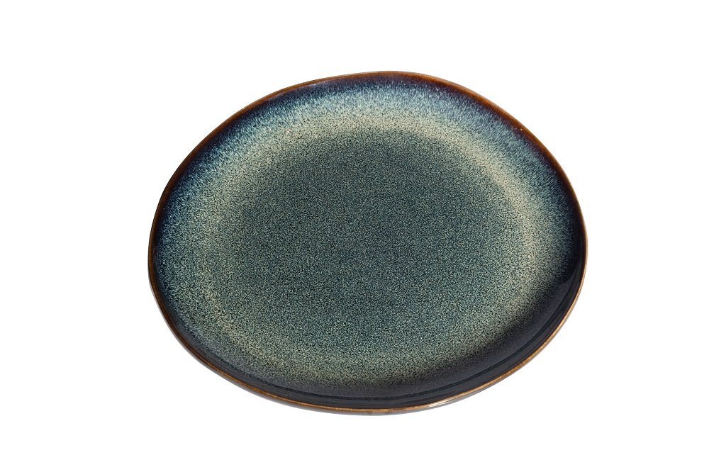 Talerz został wykonany z wytrzymałej kamionki i charakteryzuje się niepowtarzalnym wykończeniem szkliwienia typu Reactive Glaze, które tworzy subtelne, gradientowe przejścia kolorystyczne w tonacji głębokich odcieni zieleni.