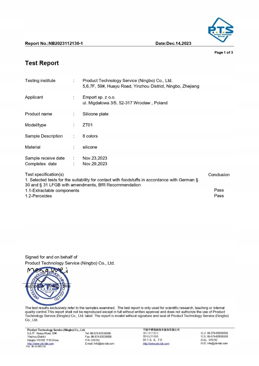 PRODUKT POSIADA CERTYFIKAT DO KONTAKTU Z ŻYWNOŚCIĄ ORAZ ŚWIADECTWO SANEPIDU DOPUSZCZENIA NA RYNEK POLSKI ORAZ UNII EUROPEJSKIEJ.