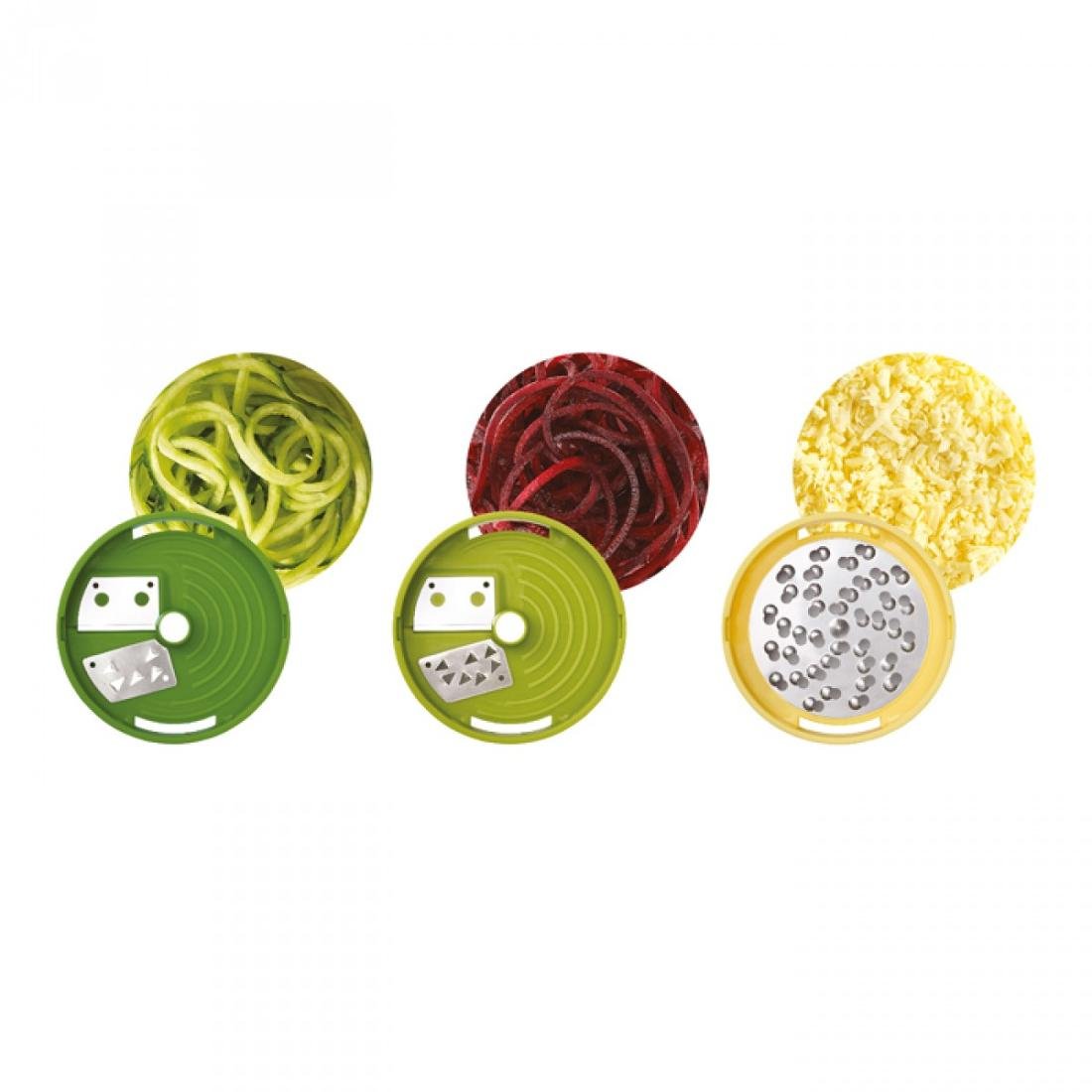 z pomocą tarki spiralnej przygotujesz cienkie plastry oraz spirale z dowolnych warzyw i owoców wyposażona jest w 3 ostrza: grube i cienkie do robienia spirali oraz jedno do ścierania z grubymi ...