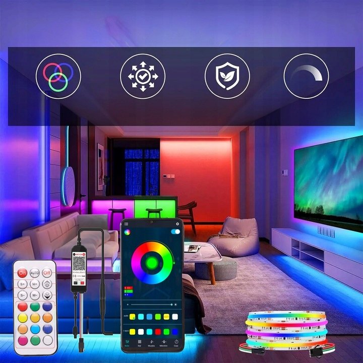 ✅TAŚMA LED 20M COB RGBIC 576LED/M WS2811 IC BLUETOOTH APLIKACJA PILOT ZESTAW