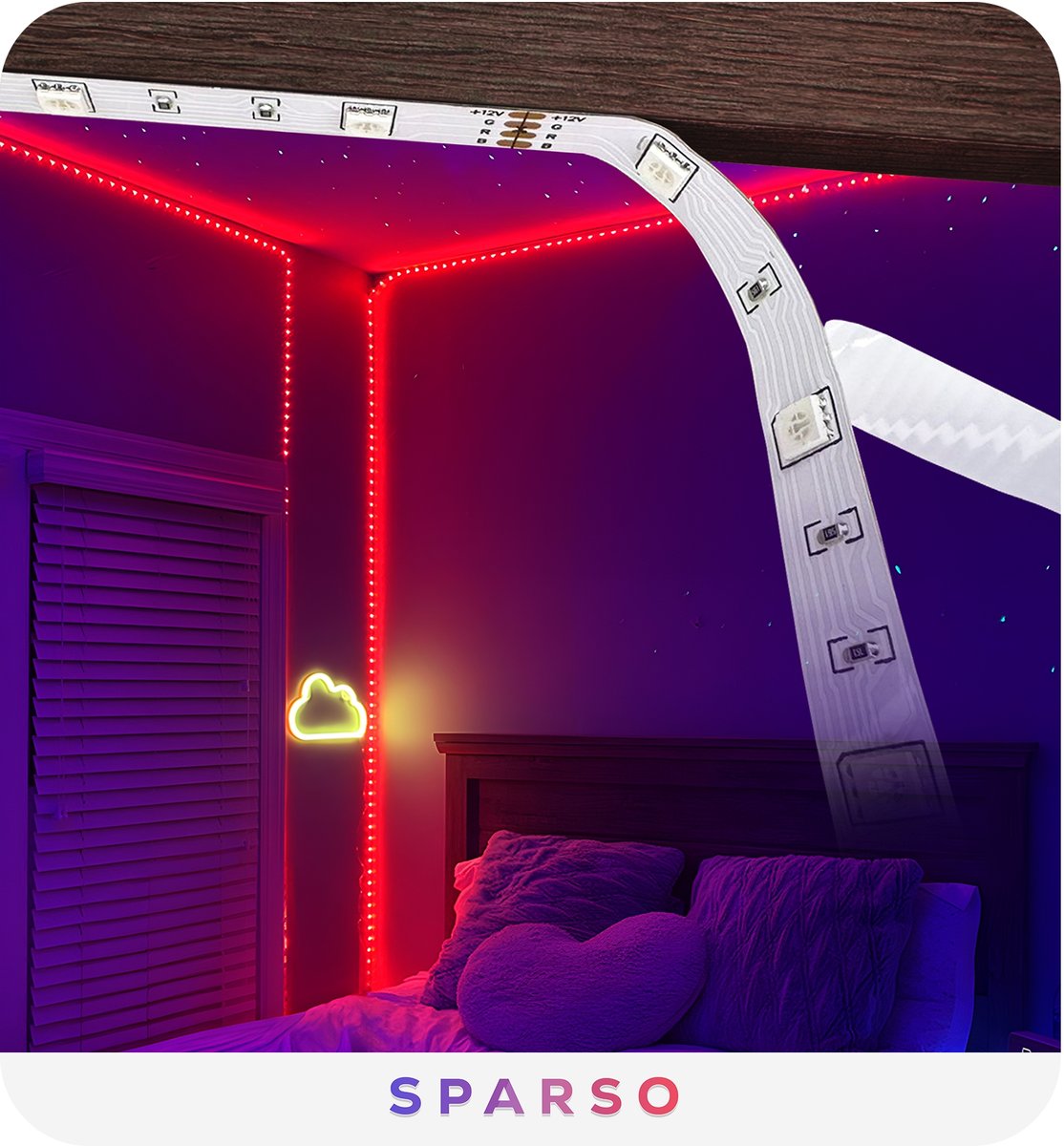 ✅Taśma LED idealnie nada się do oświetlenia sypialni, pokoju dziennego lub kuchni. Możesz również samodzielnie zaprojektować swoje mieszkanie, bez potrzeby angażowania architekta.