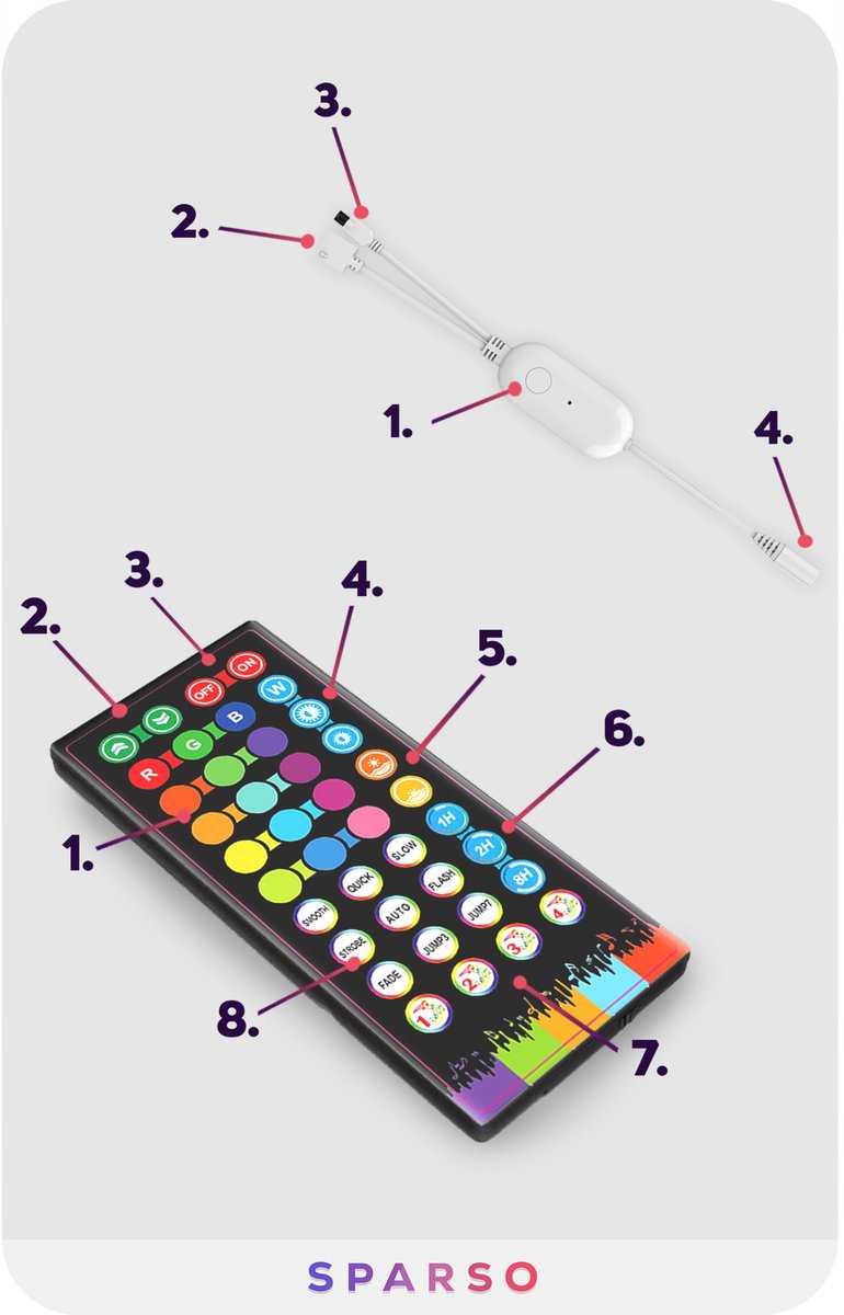 Pilot posiada wiele funkcji, dzięki którym możesz sterować taśmą LED, nie wstając z kanapy!