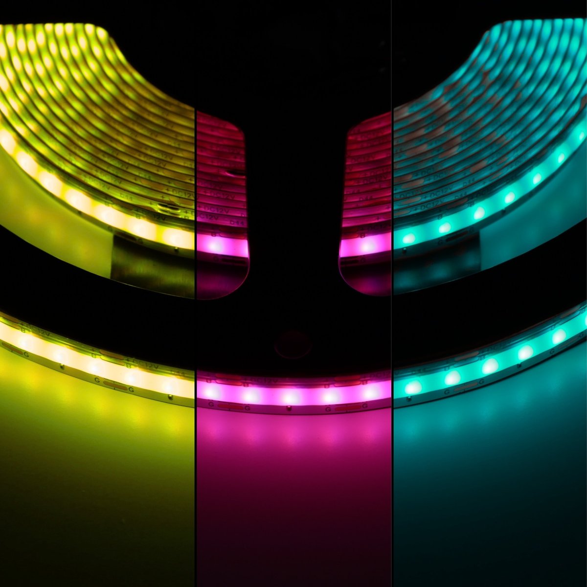 Dzięki technologii COB (Chip-on-Board) zapewnia jednolite i intensywne światło RGB, które można dostosować do różnych potrzeb aranżacyjnych.