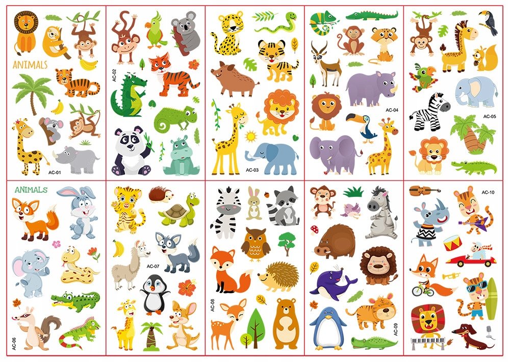 | Nazwa: | Tatuaż zmywalny tymczasowy zestaw 10 szt. dla dzieci urodziny Zwierzęta ZOO |