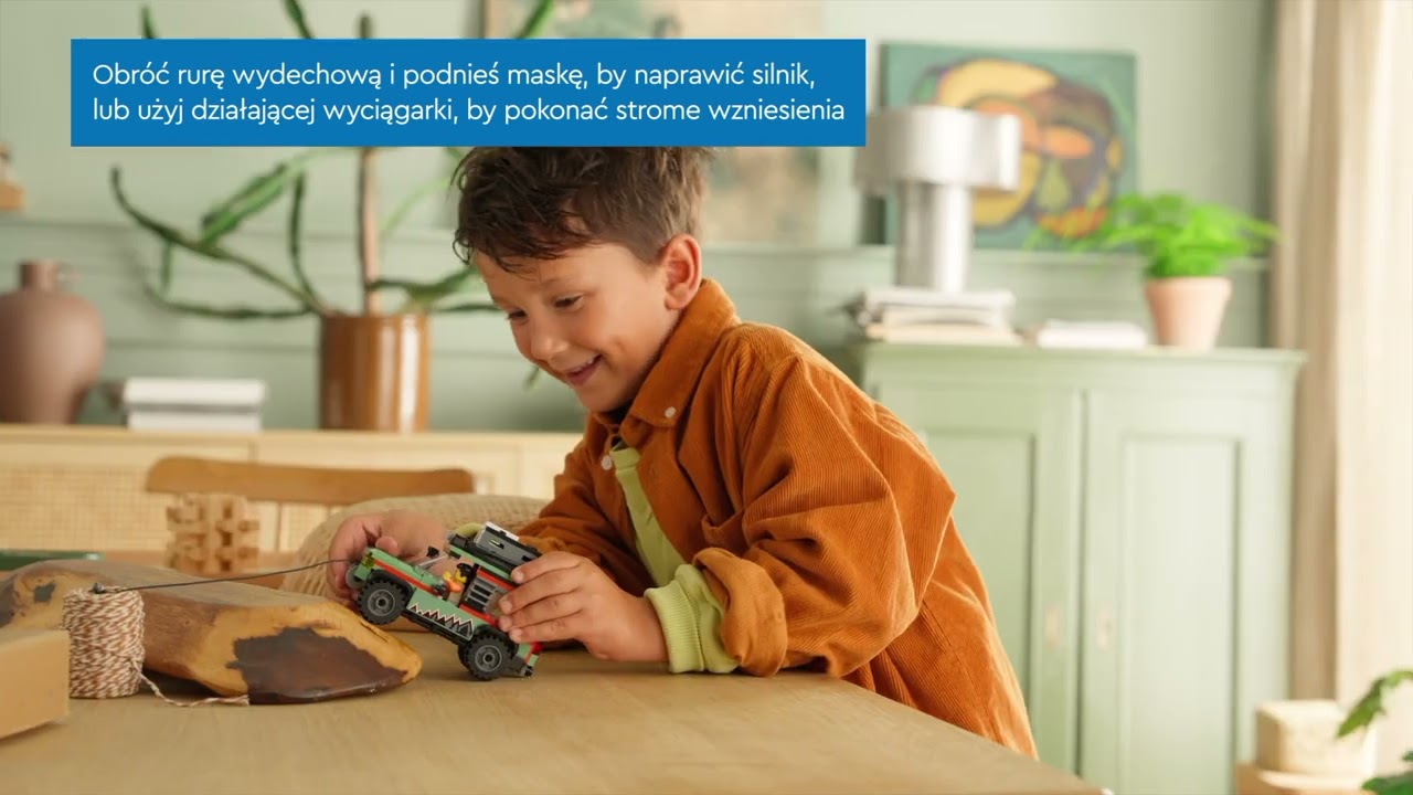 Podwójna komora na pojazdy i otwierane panele boczne.