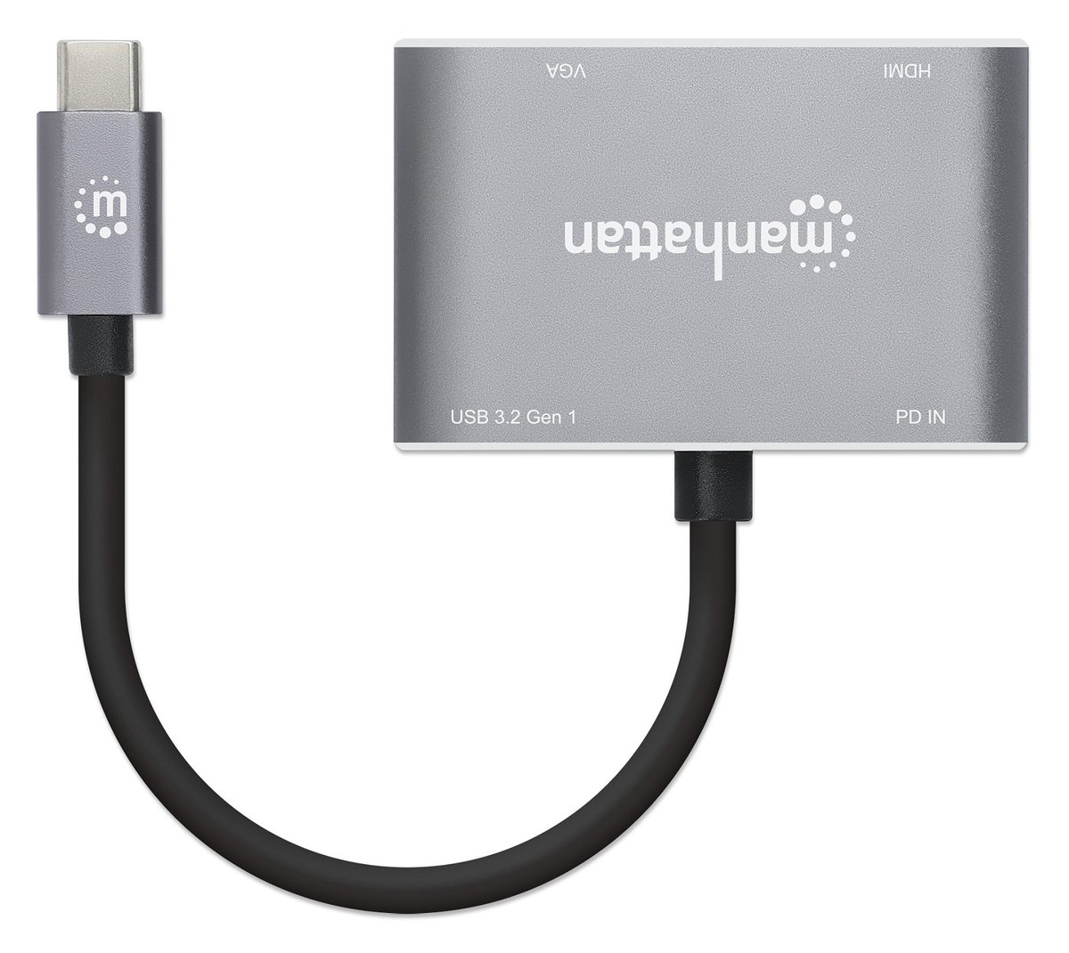 Przejściówka USB-C Manhattan 130691 – Hub Adapter USB-C 3.2 Gen1 na HDMI 4K*30Hz, VGA 1080p, USB-A 5Gbps, z Funkcją Zasilania USB-C Power Delivery 87W