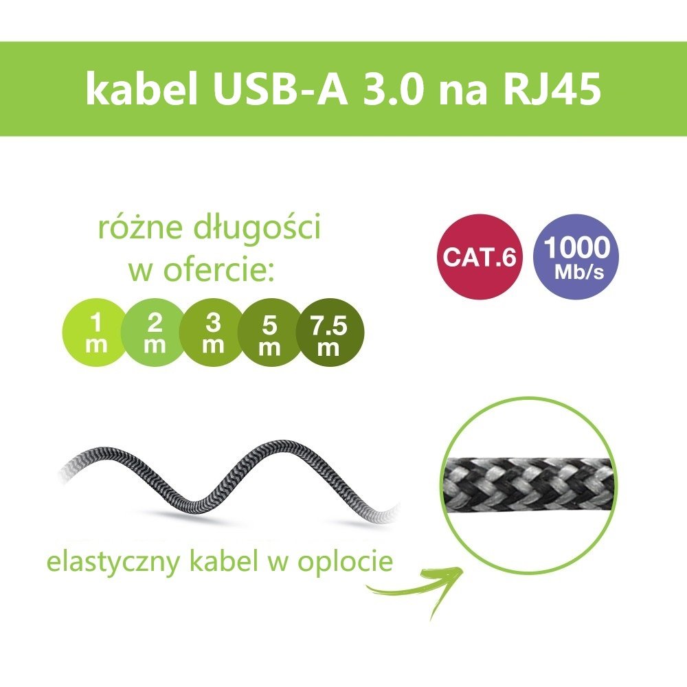 | Nazwa: | Techly Kabel sieciowy USB-A na Gigabit Ethernet RJ45 3m Oplot |