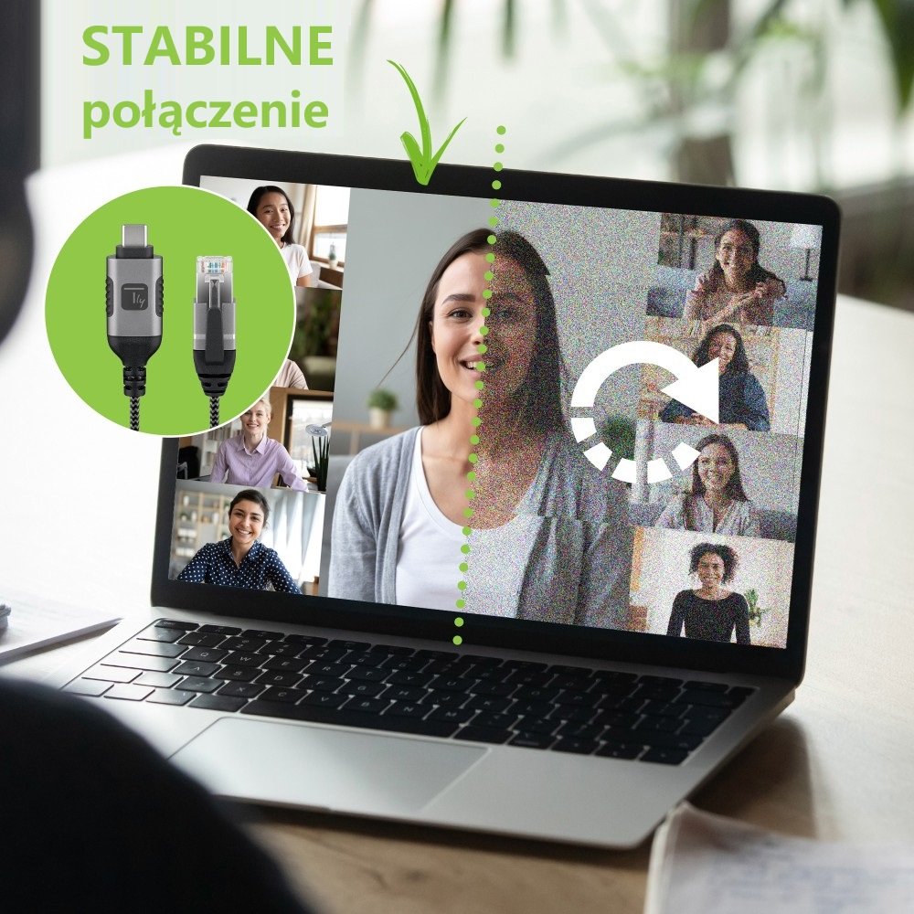 - Umożliwia podłączenie notebooka lub innego urządzenia USB-C bezpośrednio do routera, modemu lub przełącznika w celu uzyskania połączenia sieciowego