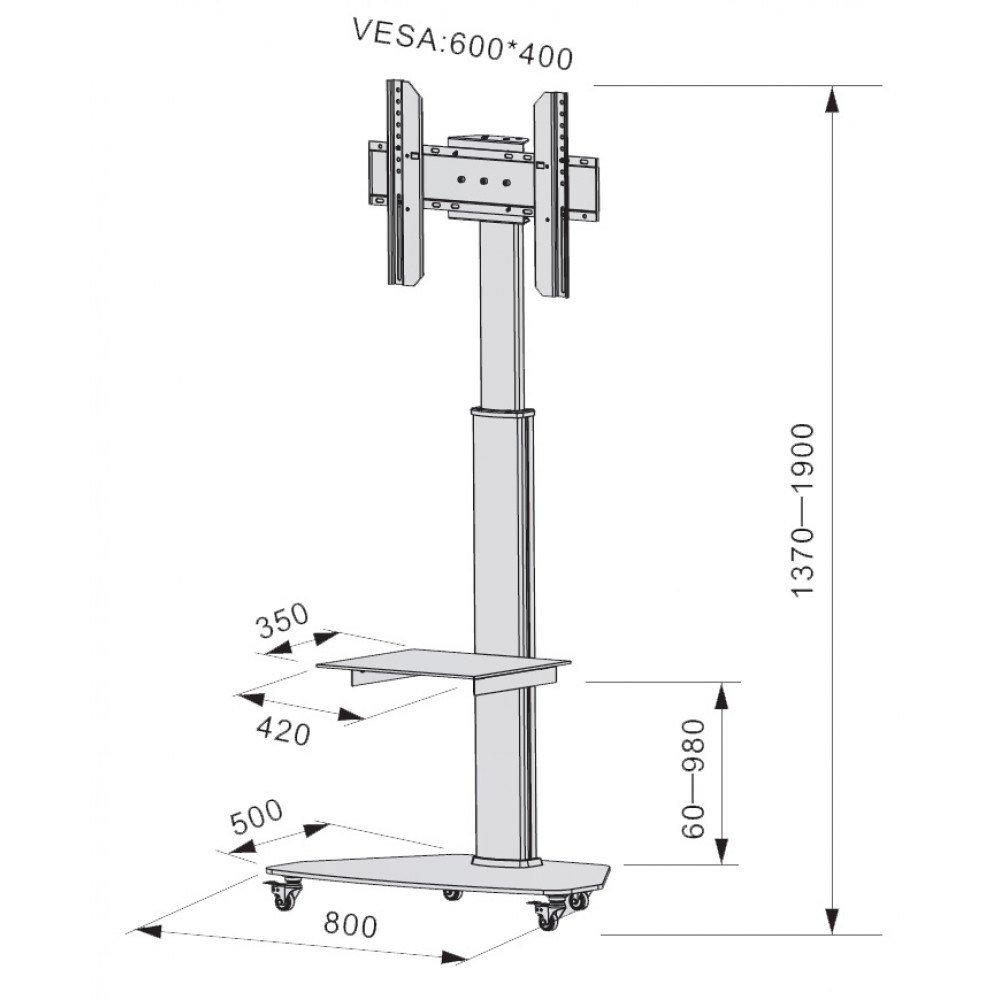 Wózek TV Techly ICA-TR3SL, P/N: 108903 – Mobilny Stojak na Telewizor 37” - 70” do 40kg, PIVOT 90°, Szklana Półka i Podstawa Parametry techniczne: Wielkość ...