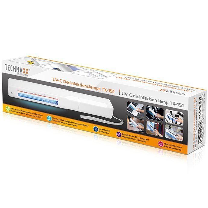 Urządzenie do dezynfekcji Technaxx TX-151 Światło UV-C o wydajności sterylizacji do 99,9% Zabija popularne bakterie, grzybiy i wirusy Do użytku domowego i przenośnego Bez chemikaliów ...
