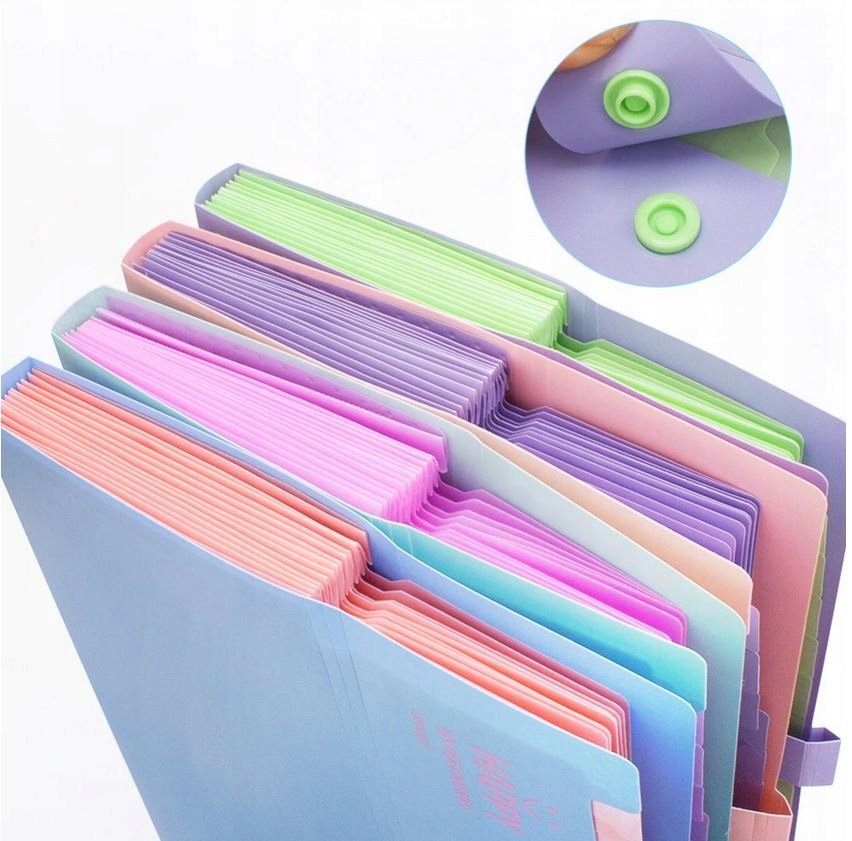 Posiada 13 kieszeni na dokumenty A4, Do kieszeni można łatwo włożyć nawet ponad 100 kartek papieru
