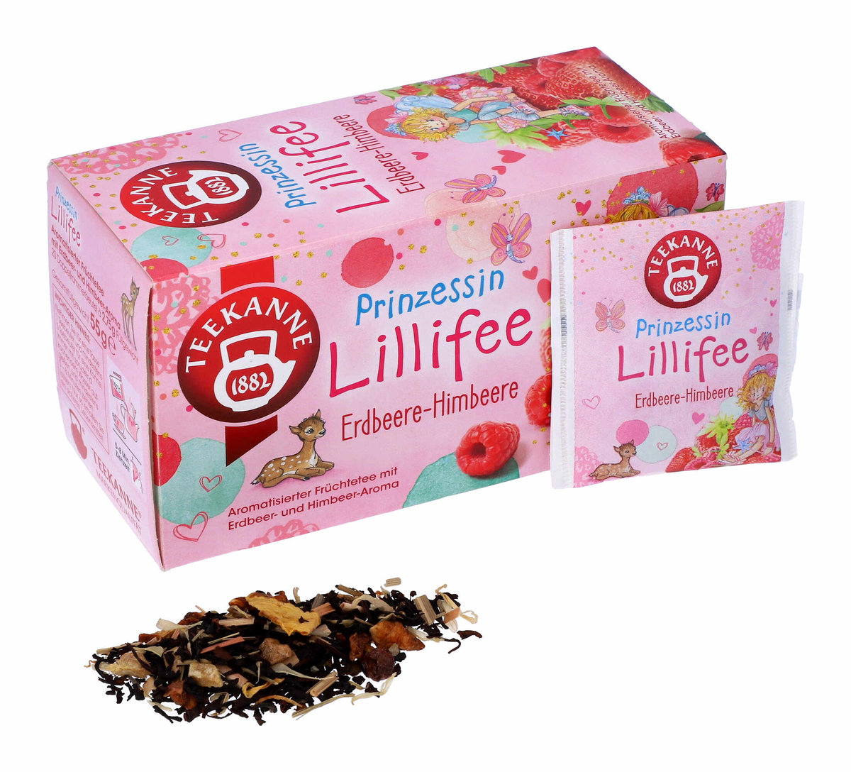TEEKANNE Princess Lillifee – łagodna, owocowa herbatka dla dzieci! Magiczna bajkowa herbata rozpieszcza małych miłośników herbaty owocowym smakiem truskawek i malin. Nasza herbata nie tylko jest niskokaloryczna, ale smakuje równie dobrze na ciepło, jak i na zimno. Dzięki temu herbata Princess Lillifee świetnie gasi pragnienie przez cały dzień. Cudownie słodka i bez cukru!