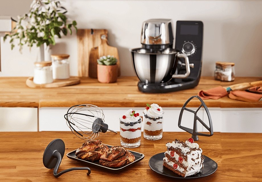 Funkcje specjalne: Bezpłatna aplikacja, Ekran dotykowy, W zestawie akcesoria do pieczenia, planetarny system mieszania, Intuicyjny coaching