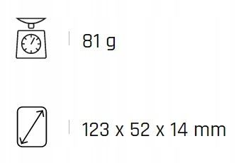 | Parametry fizyczne: | Szerokość: 52 mm, Wysokość: 123 mm, Głębokość: 14 mm, Waga:81 g |