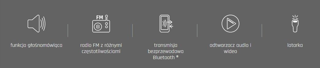 W telefonie znajdziesz mnóstwo przydatnych aplikacji i udogodnień: funkcja głośnomówiąca, Bluetooth (R), radio FM, kalendarz, latarka.