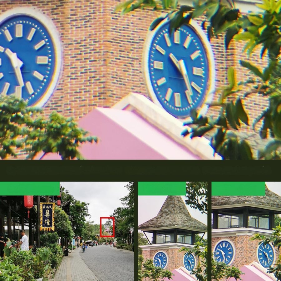 - Możliwość fotografowania z dużej odległości: teleobiektyw umożliwia uchwycenie zarówno bliskich, jak i bardzo odległych obiektów, pozwalając przyjrzeć się szczegółom sceny z dużą dokładnością. Umożliwia powiększenie obiektów nawet do 10 000 metrów przy zachowaniu ostrości i jakości obrazu. Dodatkowo funkcja cyklu światła 60 Hz poprawia widoczność i zapewnia wyraźniejsze, bardziej realistyczne ujęcia.