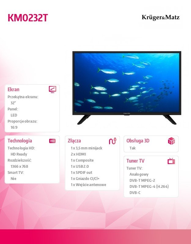 | Nazwa: | Telewizor KRUGER & MATZ KM0232T, LED, 32'' |