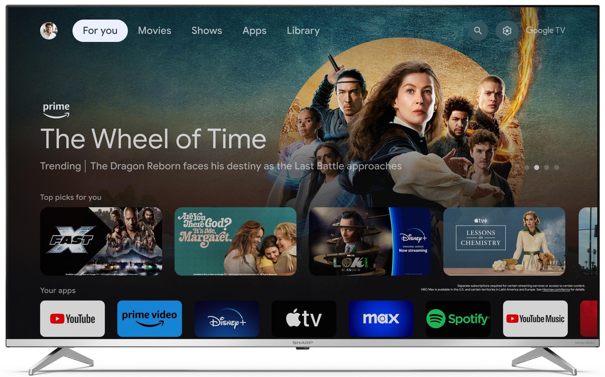 Model 50GP6465E to bezramkowy telewizor 4K Ultra High Definition Quantum Dot Sharp Google TV oferujący wyjątkowe funkcje multimedialne.