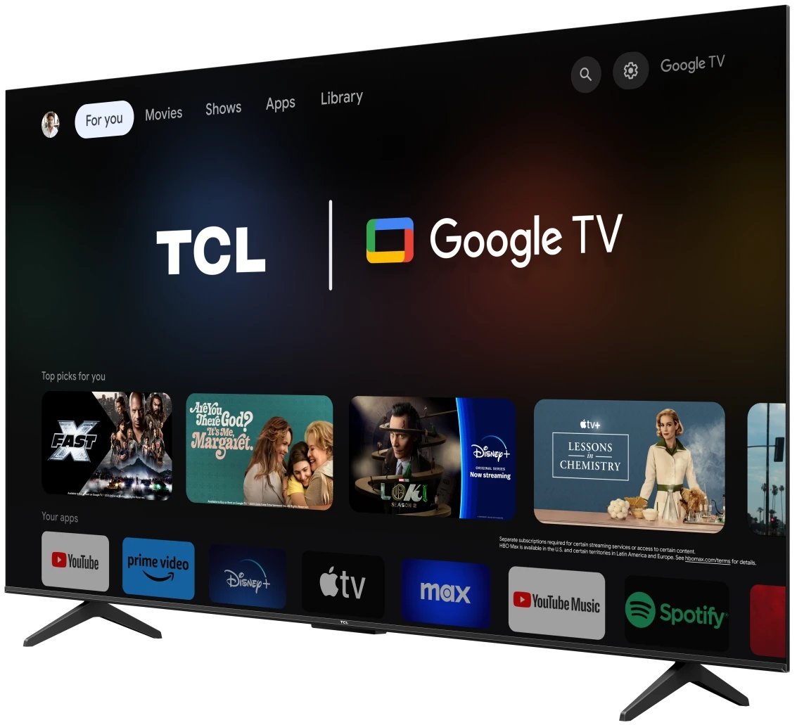 Dzięki platformie Smart TV z Google TV uzyskujesz dostęp do tysięcy aplikacji, takich jak Apple TV+ czy Viaplay, i możesz cieszyć się szerokim wyborem treści na żądanie.