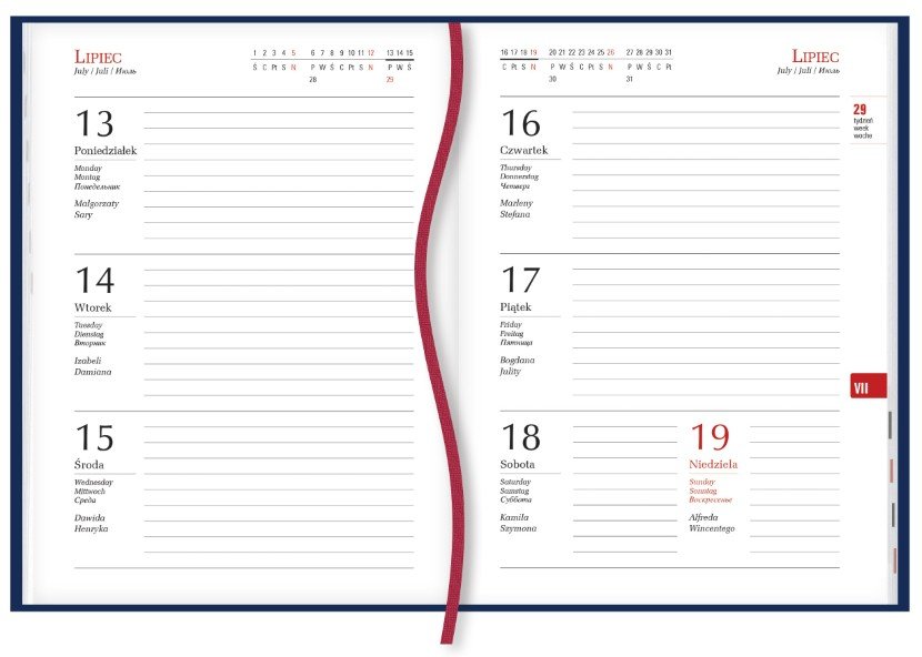 - układ kalendarium: 1 tydzień - 2 strony