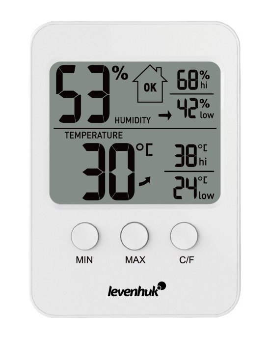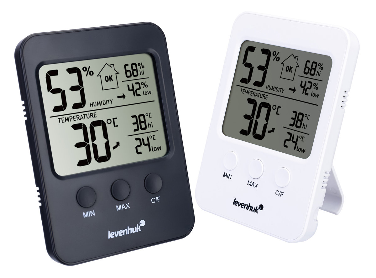 Termohigrometr Levenhuk Wezzer BASE L30 to praktyczne urządzenie cyfrowe, które będzie przydatnym narzędziem w każdym domu. Nie tylko mierzy temperaturę w pomieszczeniu i wilgotność powietrza, ale też pokazuje tendencje w zmianach parametrów meteorologicznych. Z takim narzędziem zawsze będziesz w stanie monitorować podstawowe parametry mikroklimatu w pomieszczeniu oraz w łatwy sposób śledzić ich zmiany. Dzięki temu możesz zapobiegać nadmiernej wilgotności powietrza, która sprzyja powstawaniu pleśni, i jego przesuszeniu.