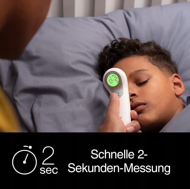 Braun bezdotykowy termometr czołowy BNT300 to elektroniczny termometr czołowy do pomiaru temperatury poprzez dotyk czoła oraz nieinwazyjny i bezdotykowy pomiar temperatury. Termometr ten w porównaniu do tradycyjnych termometrów czołowych pochłania dwukrotnie więcej promieniowania cieplnego i precyzyjnie mierzy temperaturę w zaledwie 2 sekundy. Kodowany kolorami wskaźnik wartości pomiarowej zmienia kolor w zależności od wyświetlanej temperatury. Sygnał dźwiękowy oraz światło potwierdzają prawidłowe ustawienie termometru w celu optymalnego pomiaru temperatury. Zawartość opakowania: - brązowy termometr bezdotykowy BNT300 - 1 pokrowiec ochronny - 2 baterie alkaliczne AA