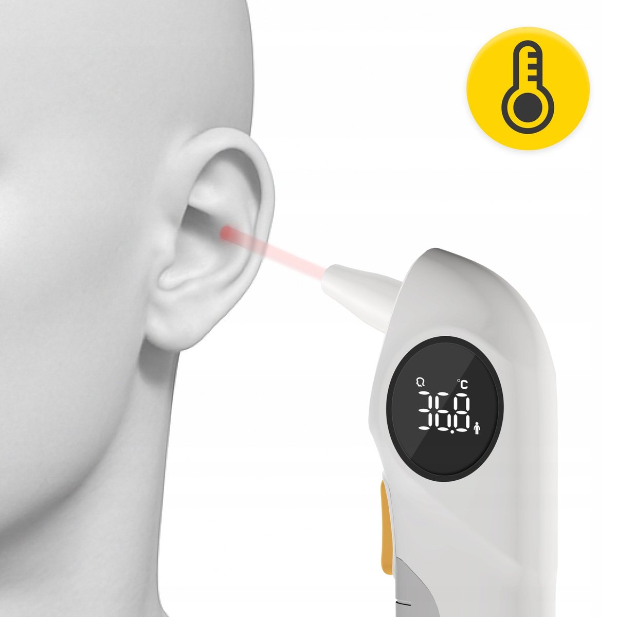 ✅ Wbudowana latarka LED – idealna do pomiaru temperatury w uchu