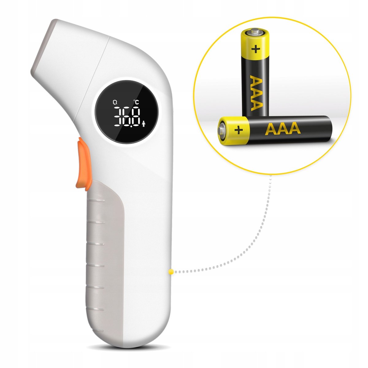 - Zasilanie: 2 × AAA (w zestawie), aż do 1000 pomiarów