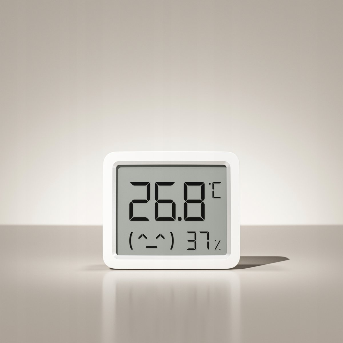 Xiaomi Smart Temperature and Humidity Monitor 3 Mini wyróżnia się smukłą konstrukcją z ramką o grubości 5,1 mm oraz ekranem LCD 42,8 × 35,1 mm.
