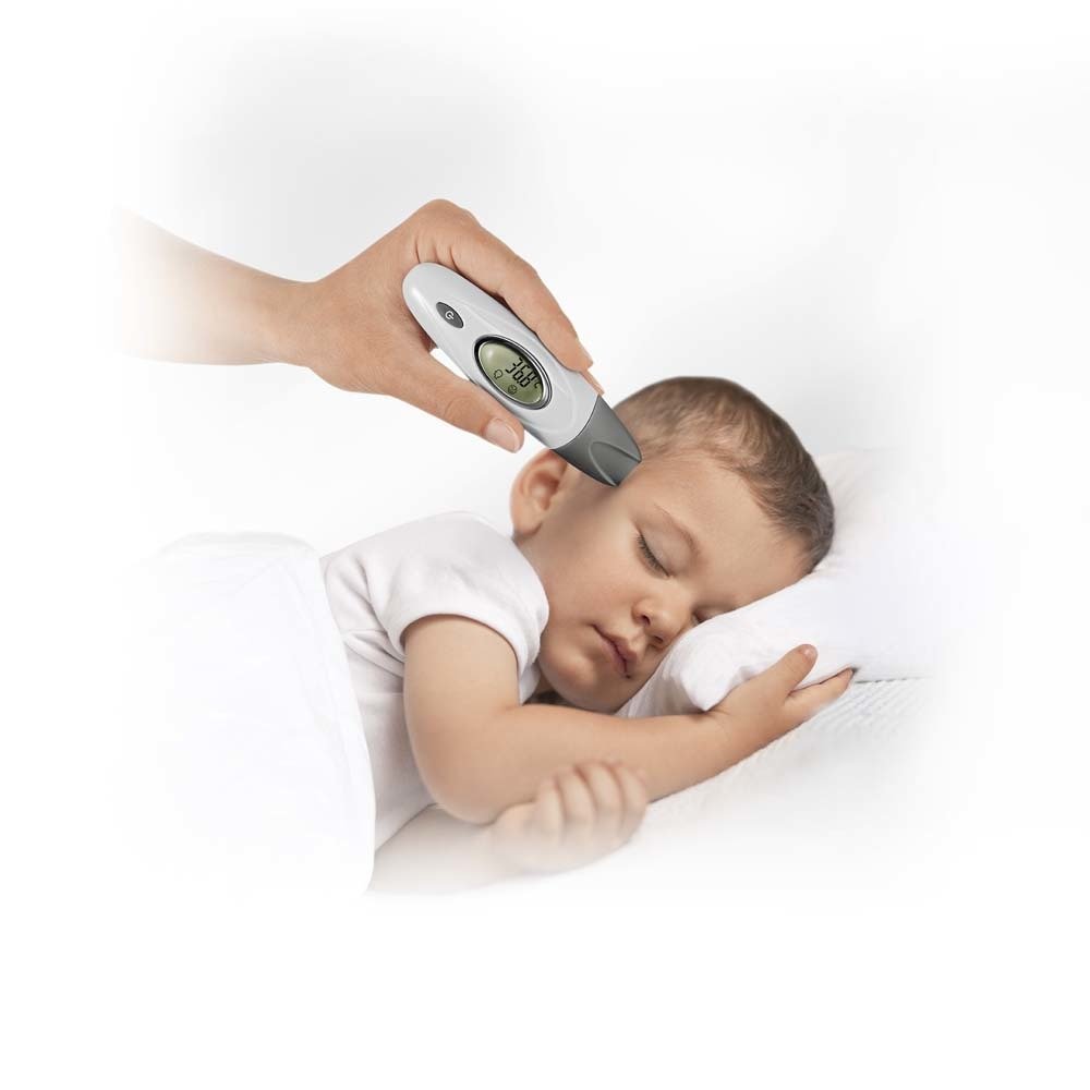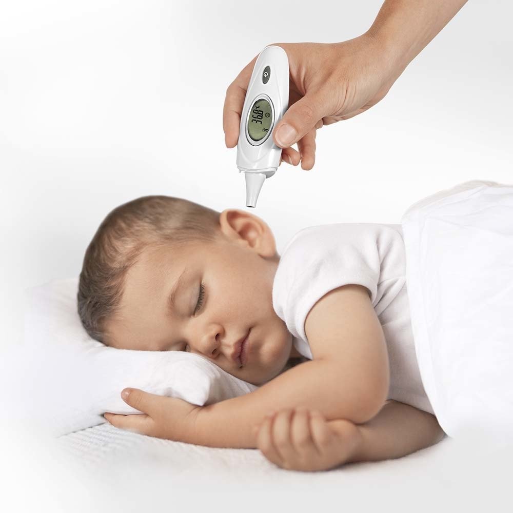 Optyczny i akustyczny sygnał ostrzegawczy sprawią, że nie przeoczy się podwyższonej temperatury ciała. Funkcja pamięci 19 ostatnich pomiarów pozwala z łatwością śledzić, czy gorączka spada czy wzrasta. Wyświetlacz LCD wskazuje zużycie baterii, dzięki temu bateria nie wyładuje się nagle i niespodziewanie. Termometr automatycznie wyłącza się po 30 sekundach od ostatniego pomiaru, dzięki czemu oszczędza baterię.