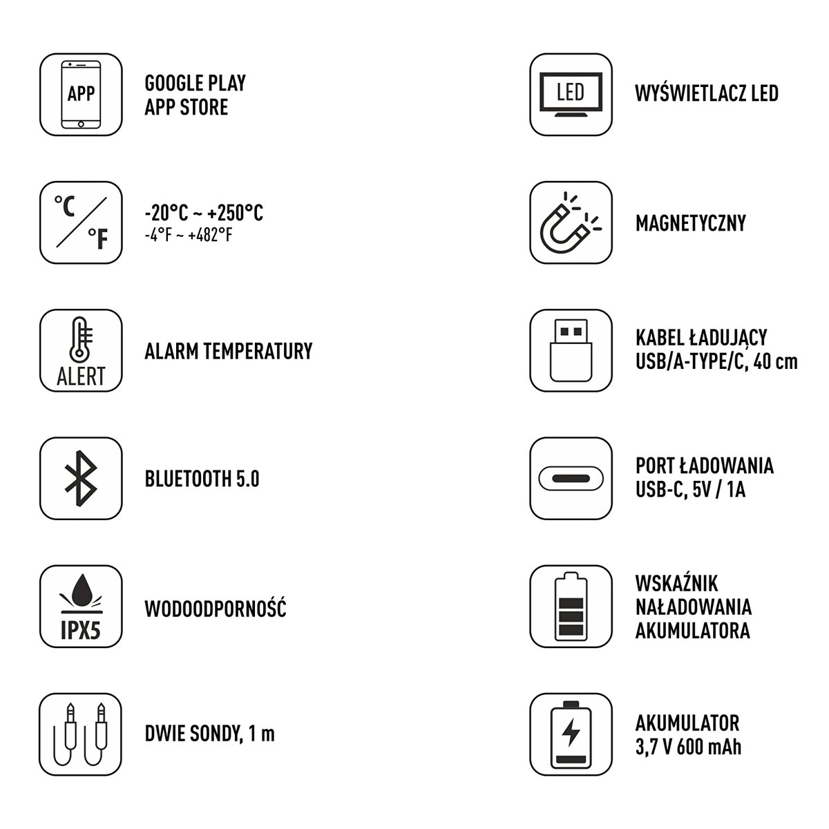 | Nazwa: | Termometr kuchenny z Bluetooth, 2 sondy |